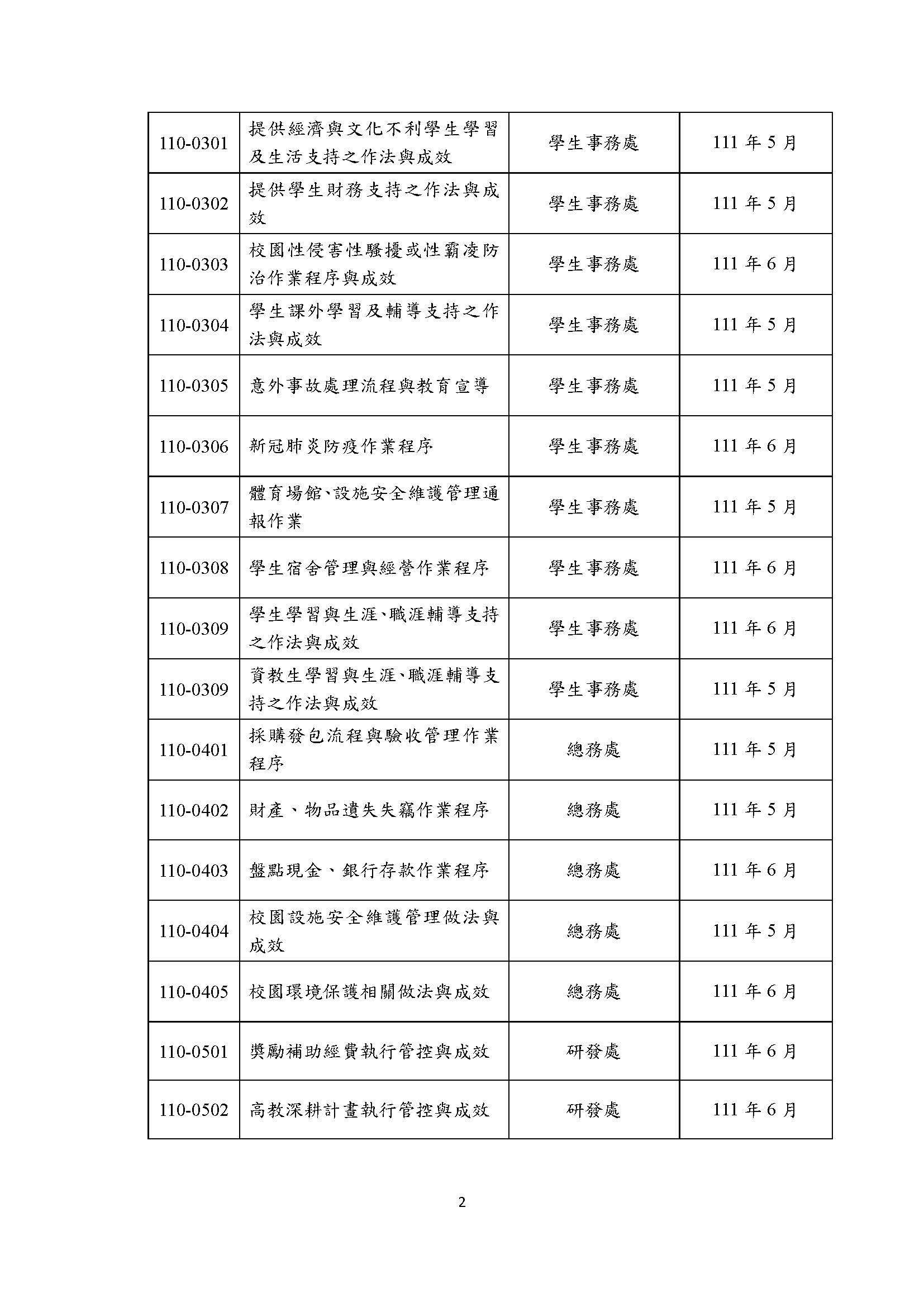 5-1-2a 開南大學110學年度內部稽核工作計畫